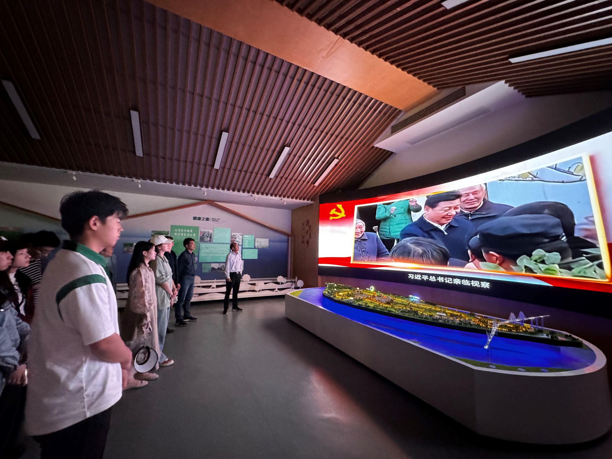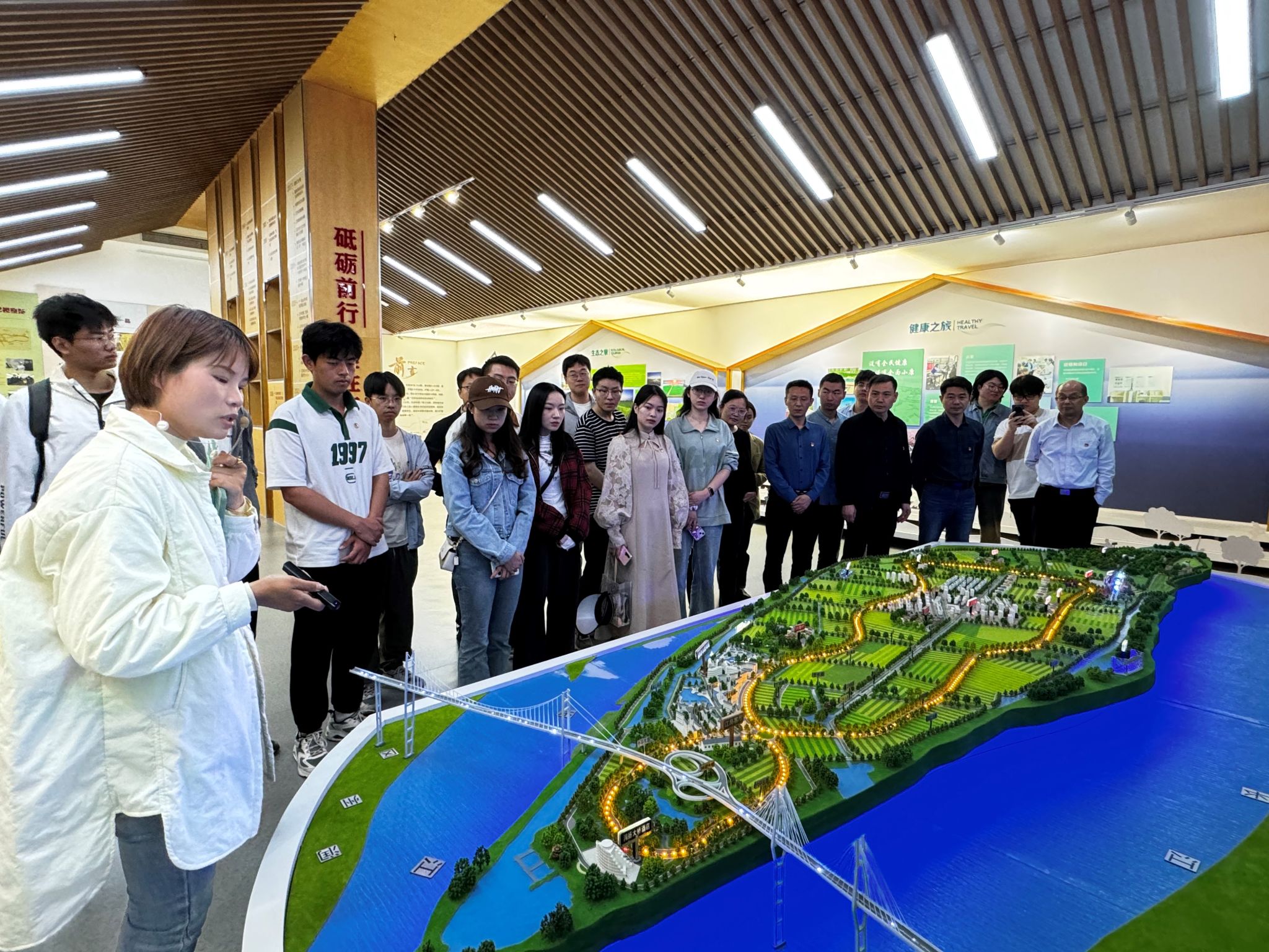 在世业洲江岛客厅,青年学生认真学习了2014年习近平总书记在镇江调研时的情况介绍,参观了世业洲观光旅游、生态农业、医疗卫生等成果展示,观看了世业洲“牢记总书记嘱托、答好新时代答卷”的宣传片。
