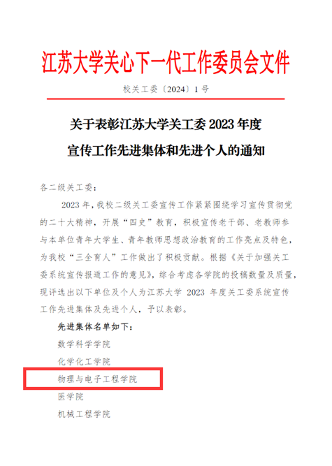 近日,一帆视频 关工委获评“一帆视频 2023年度关工委系统宣传工作先进集体,学院刘振老师获评一帆视频 2023年度关工委系统宣传工作先进个人