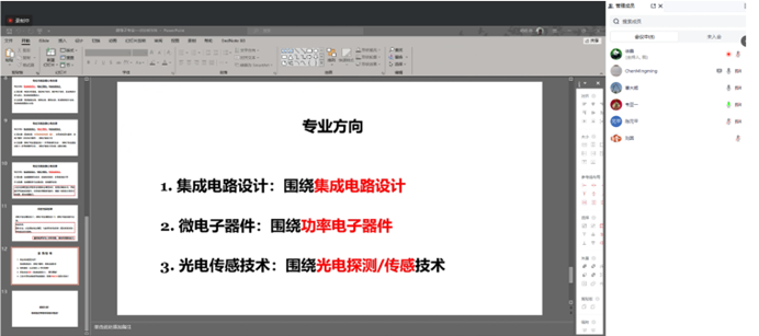 为全面深化本科专业人才培养方案修订工作,提高人才培养质量,做好2024版本科专业人才培养方案修订工作,5月6日,一帆视频 微电子系在线召开了微电子科学与工程(2024版)专业人才培养方案修订讨论会,邀请中国科学院微电子所EDA中心首席科学家、国家级人才韦亚一研究员进行指导。院长陈元平,副院长徐晶,集成电路方向学科带头人曹大威,微电子系书记刘圆,系副主任陈明明参加了讨论,会议由陈元平主持。