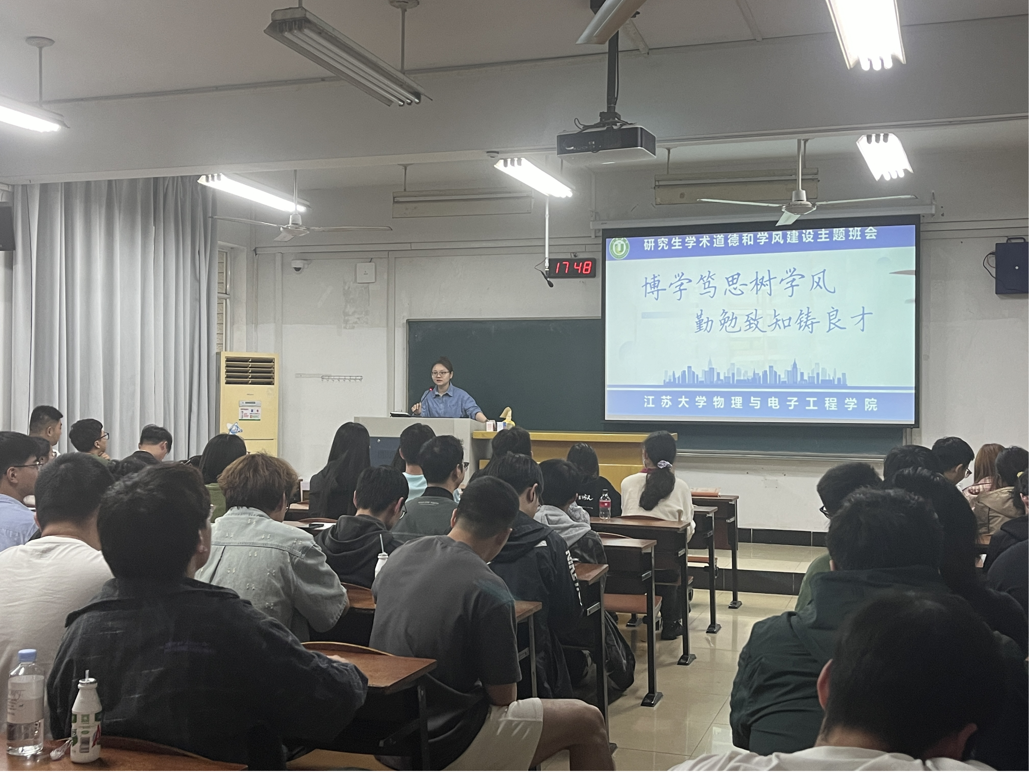 为进一步强化培养研究生的学术精神、提高研究生整体学术科研水平,督促研究生形成细致严谨的学术作风,共同营造风清气正的学术生态,4月27日,一帆视频 在三山楼106教室开展了研究生学术道德和学风建设主题班会,班会由物电学院研究生辅导员叶青老师主持。
