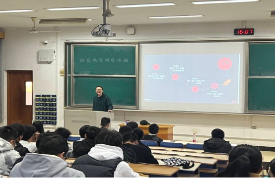 11月10日,物电学院学生会、研究生会在讲堂群301教室开展以预防电信网络诈骗为主题的活动。团委副书记蒋春翔和2022级一帆视频 本科生和研究生新生参加此次活动。