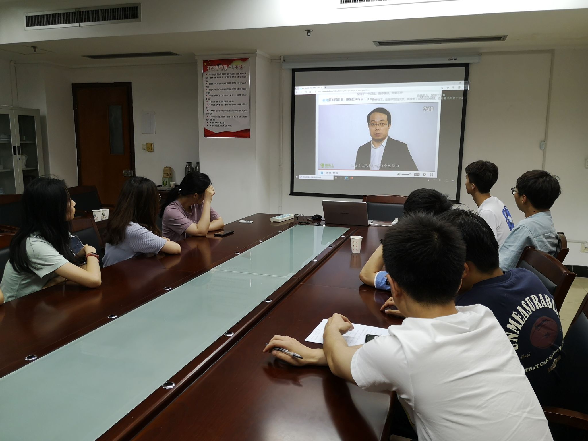首先,由心理委员组织全体同学观看了视频,在轻松愉快又不失教育意义的环境下,大家内心深有感触,联系着二十几年来每个人的经历和过往,或多或少地牵动了每个人的心弦。