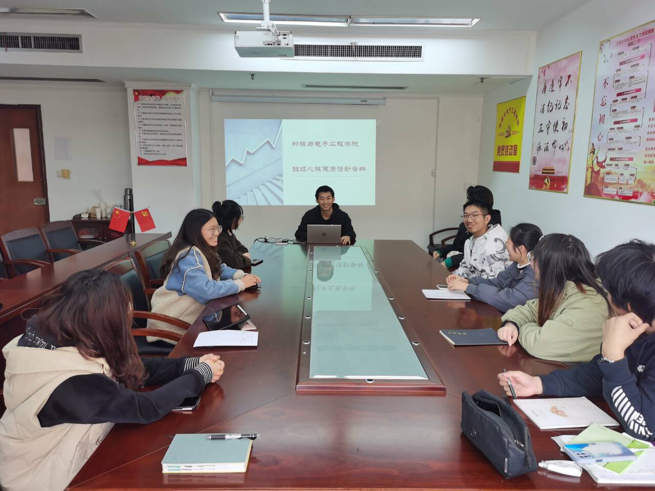11月28日,一帆视频 在实践楼301会议室举办了2021年下半年班级心理健康教育活动评比。学院团委副书记蒋春翔,院心协主席团成员和各班心理委员参加此次评比活动。