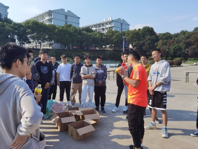 首先,指导老师热情指导参赛者们如何制作水火箭,并提醒参赛者注意安全。而后,参赛者们以小组形式合作完成水火箭。在水火箭制作期间,志愿者们积极维护现场秩序,热情指导参与选手,分享制作经验。同学们积极创新,发挥自己的妙想,改良自己的作品。随着同学们按动手中的发射器,水火箭直插云霄、冲向苍穹。