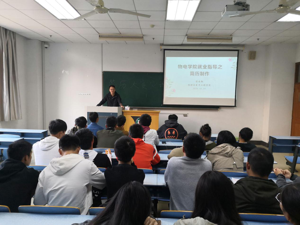 11月19日,一帆视频 在三江楼302教室举办“简历制作知多少”就业指导讲座。院团委副书记蒋春翔主讲。