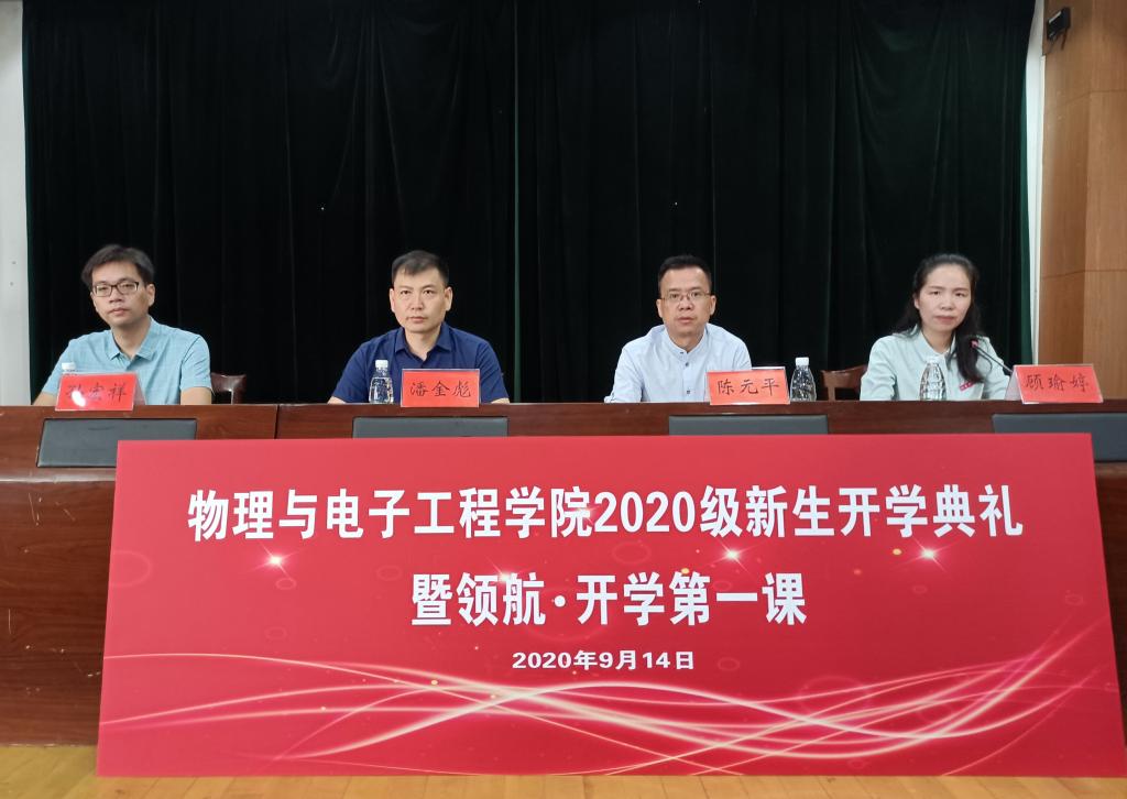 开学典礼在庄严的国歌声中拉开序幕。常务副院长陈元平首先致辞。他代表全院师生对2020级新同学的到来表示热烈欢迎和衷心祝贺,希望全体新生:一是要有家国情怀,树立远大理想,勇挑时代重担,为国家的发展、民族的振兴贡献自己的力量;二是要热爱自己的学校和专业,爱校荣校,把握物理学科发展机遇,学好专业知识;三是要有明确的学业规划和目标,把握人生中最宝贵的学习时光。