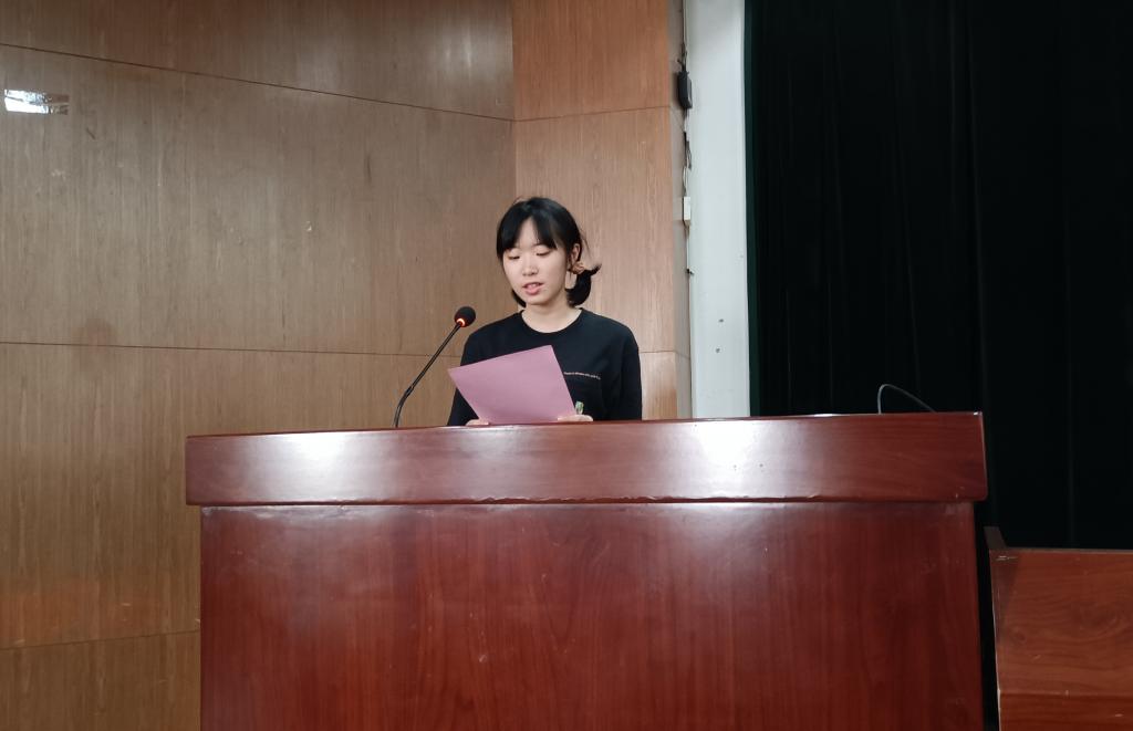 研究生新生代表沈雪敏同学回顾了伏案苦读的考研岁月,并号召所有研究生新生以认真、严谨的态度钻研学术,夯实基础,从实际出发,发挥创造力,不驰于空想,不骛于虚声,以求真的态度踏实地学习,真正践行“博学、求是、明德”的江大校训。
