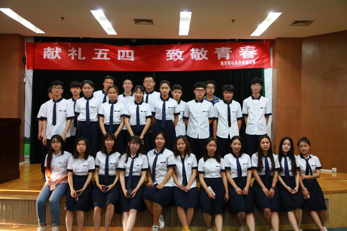 为增强班级凝聚力和同学们的集体荣誉感,4月27日下午理学院在讲堂群210报告厅举办了“献礼五四,致敬青春”主题心灵手语操比赛。理学院冯旭老师、贡崇颖老师、刘浩老师、尹华老师都作为评委老师亲临现场为同学们加油打气。理学院全体大一新生班级均盛装参与比赛演出,场面热烈。