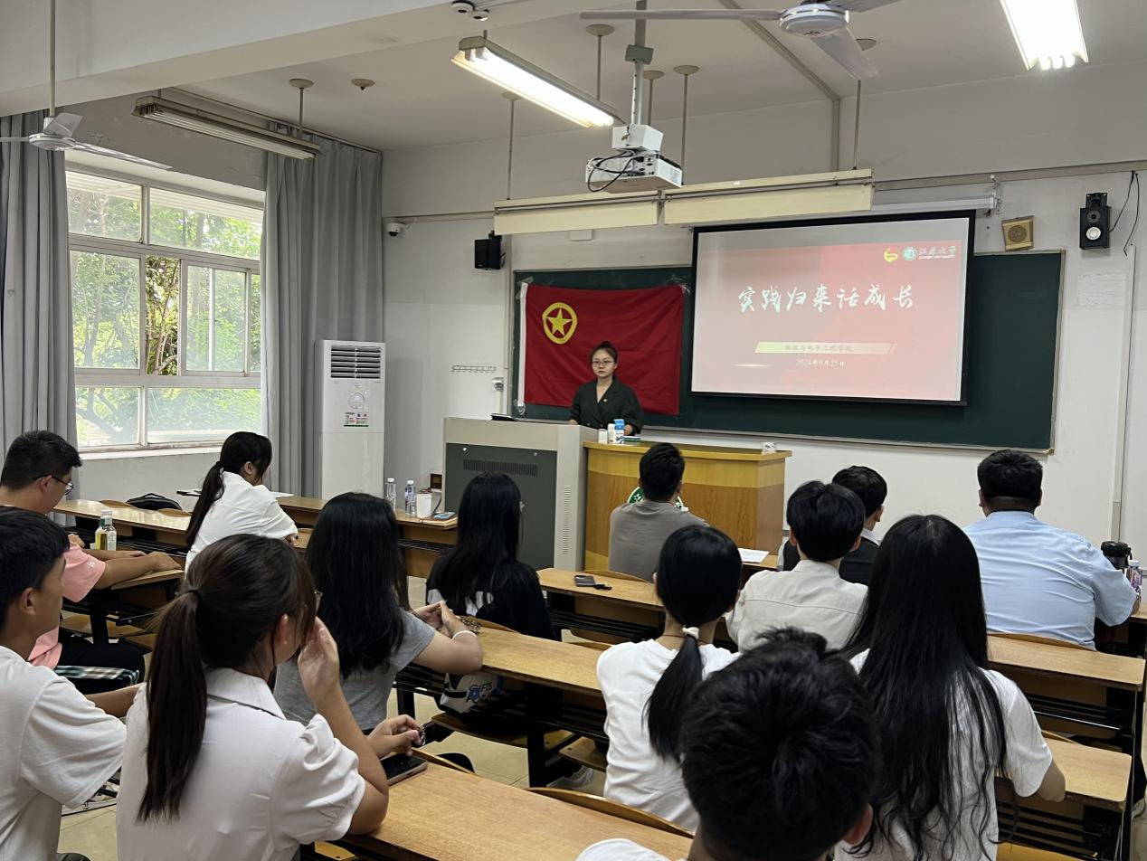 会上,叶老师总结回顾了今年暑期社会实践活动的筹备过程、实施细节以及取得的成效,对同学们走出校园,深入基层,用专业知识服务社会的各项实践活动给予了肯定。叶青特别提到了几个亮点团队,如“百处红色,记忆寻根”爱国主义实践团、“物焕星熠,逐梦追光”乡村振兴促进团、“碳寻发展,绿动未来”生态文明宣讲团,这些团队紧密结合专业特色,以红色宣讲、公益科普、走访调研、劳动体验等形式为传承红色基因、助力乡村振兴贡献了一份力量,得到了实践地的广泛好评。
