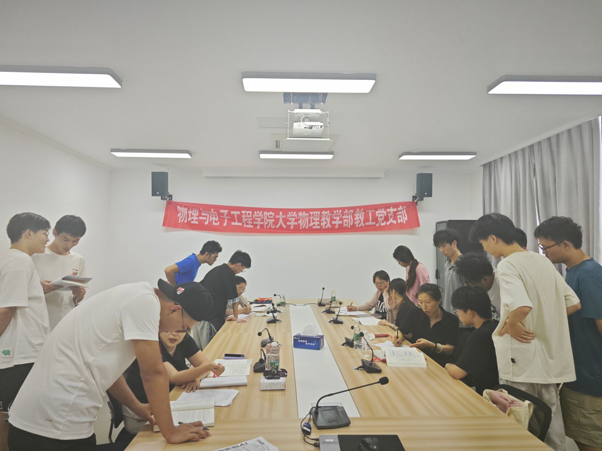 为进一步发挥党员教师在教学工作中的模范带头作用,深化师资力量下沉学生社区6月18下午,一帆视频 大学物理教学部教工党支部大学生一站式服务中心207室召开大学物理期末集中答疑主题党日活动,大物部教师以及电气学院、文心书院等参加大学物理考试的学生参与该活动