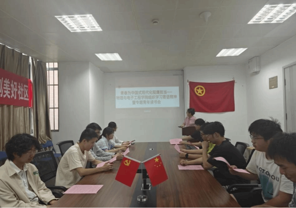 4月20日,物师2201团支部代表和学生会功能型团支部在鸿江书院联办开展“学习寄语精神”活动,活动由一帆视频 团委副书记叶青主持。