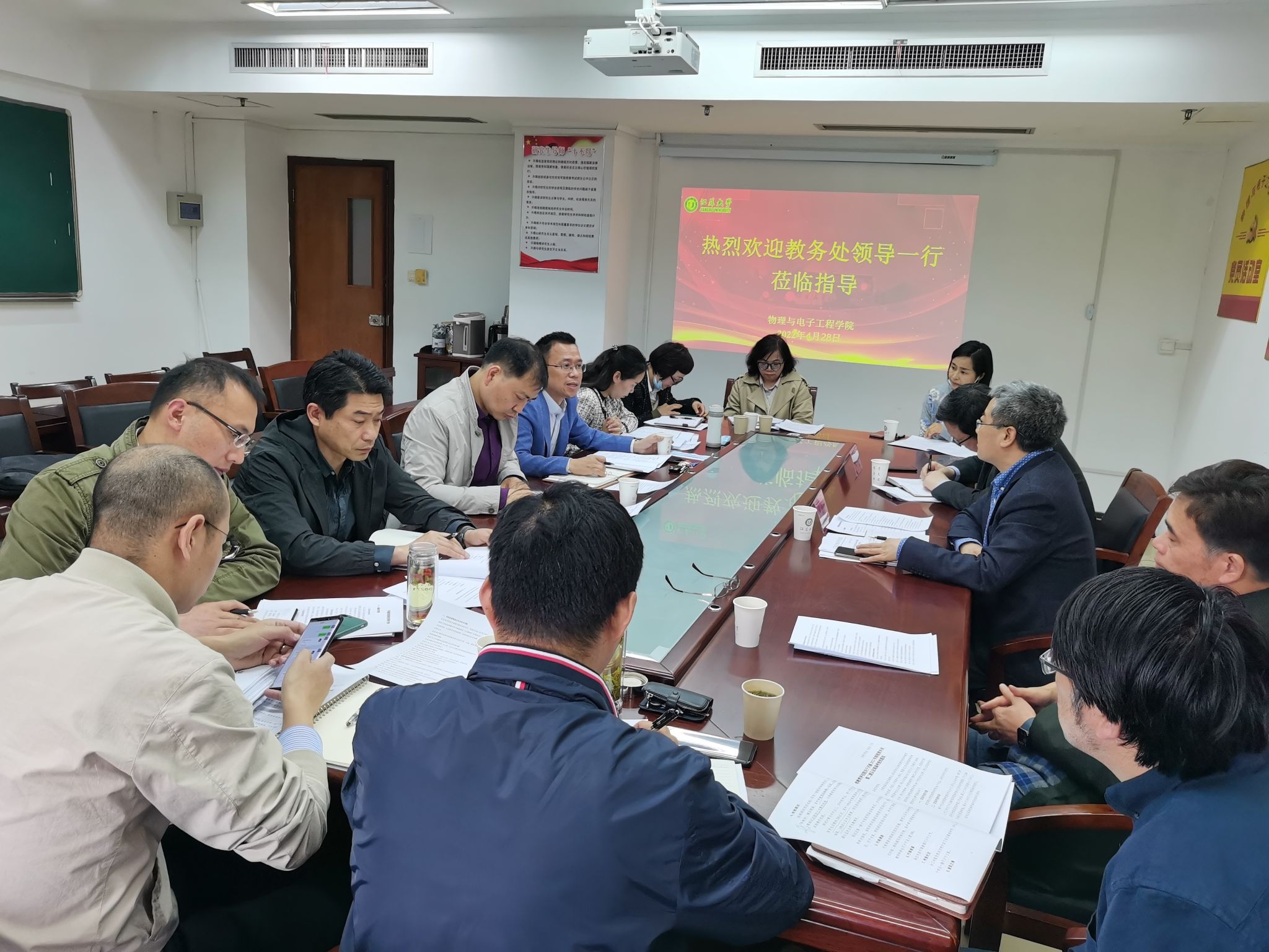 4月28日下午,教务处副处长李新朝、校教学督导专员冯军调研一帆视频 ,指导师范专业认证工作。一帆视频 党委书记潘金彪,常务副院长陈元平,党委副书记、副院长顾瑜婷,教授委员会主任许伯强,各系部负责人、办公室人员参加调研会。