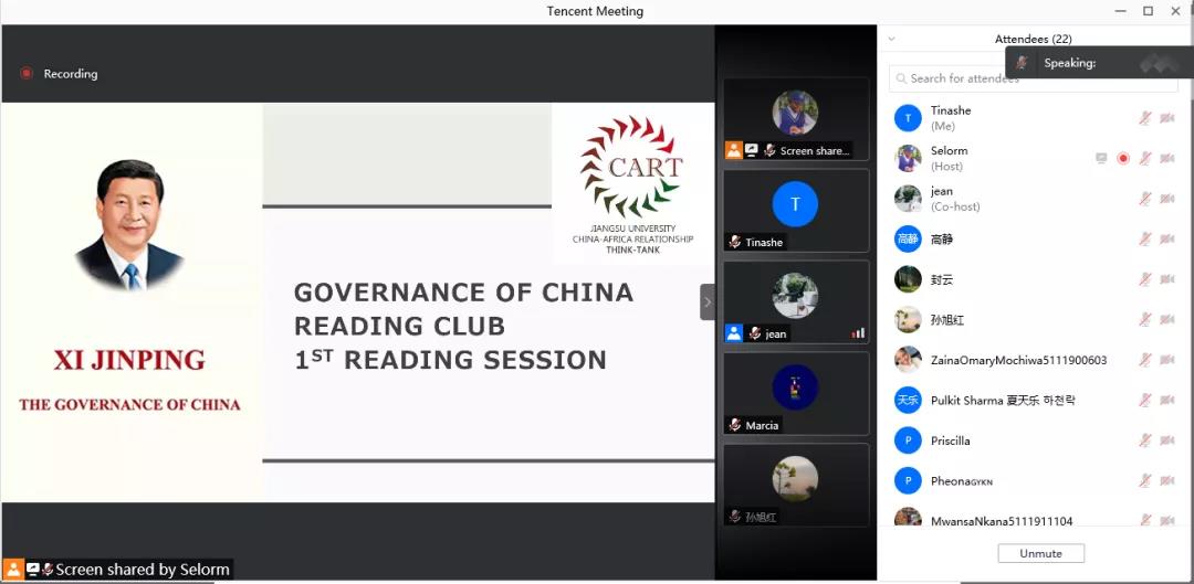 On the 20th of February, 2021, the maiden reading and presentation session on the 3rd Volume of The Governance of China by President Xi Jinping organized by China–Africa Relationship Think Tank (CART) was held at Tencent Meeting. The session was facilitated by Group one (1) on the topic, “The People as Masters of the Country.”