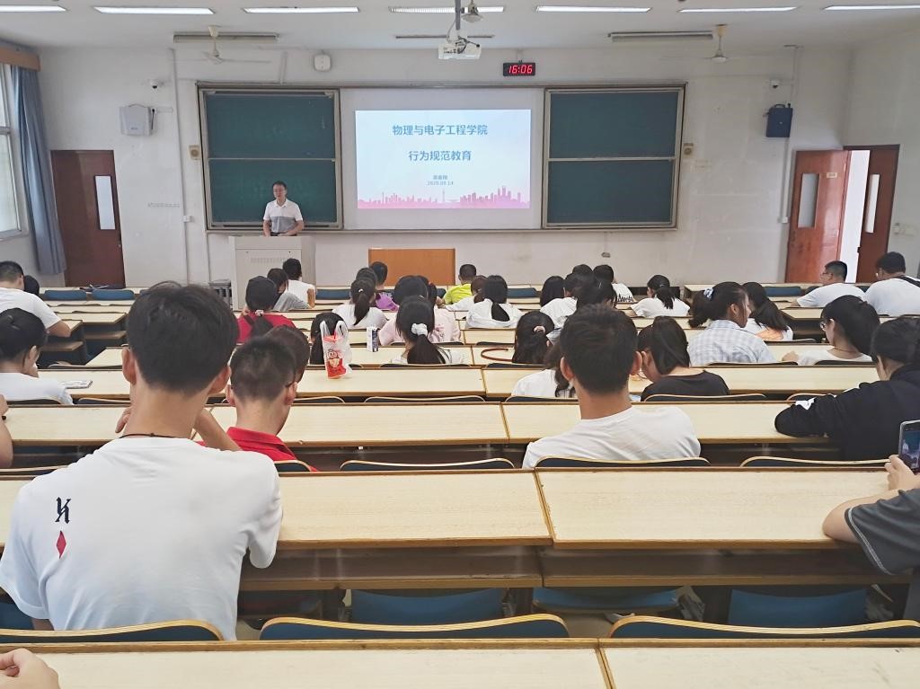 On the afternoon of September 14, the special education of 2020 freshmen's behavior standard was held in the lecture hall group 201. Jiang Chunxiang, a counselor of 20 freshmen, gave the lecture, and all 2020 undergraduate freshmen participated in this activity.